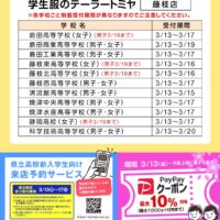 令和8年度 新入生 県立高校制服採寸予約はじまりました。 県立高校制服採寸予約がはじまりました。 テーラートミヤでは、 …